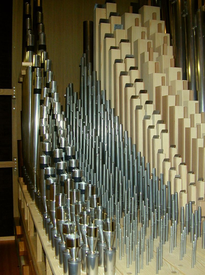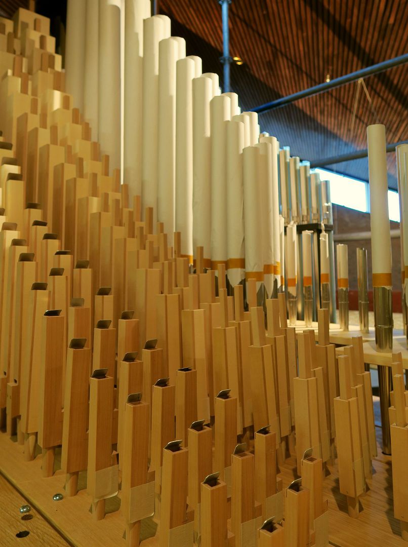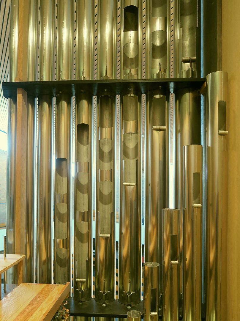 Der Grundgedanke des ausführenden Architekten, Aaron Werbick, bei diesem Entwurf bestand darin, ansonsten in der Regel nicht sichtbare Teile der Orgel als gestalterische Elemente zu verwenden.