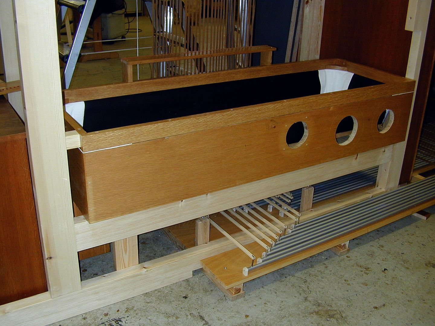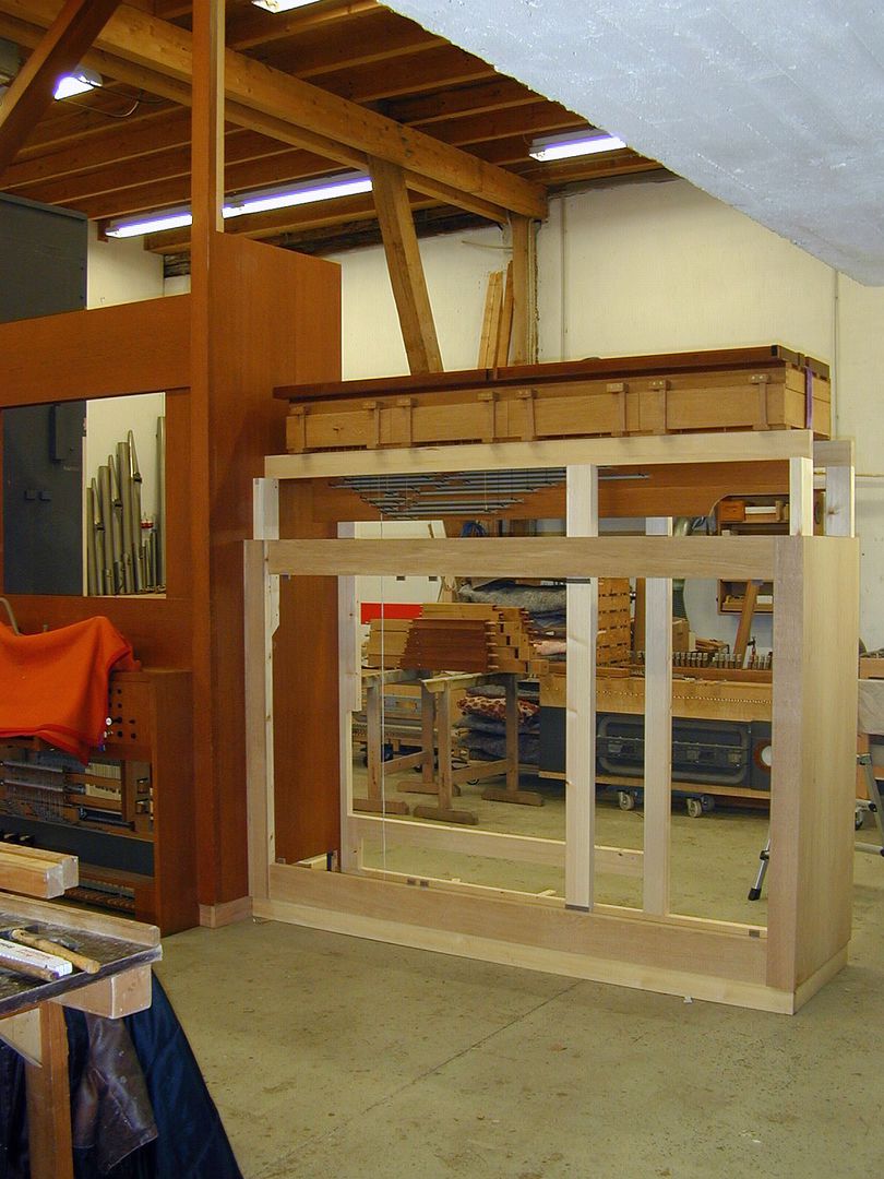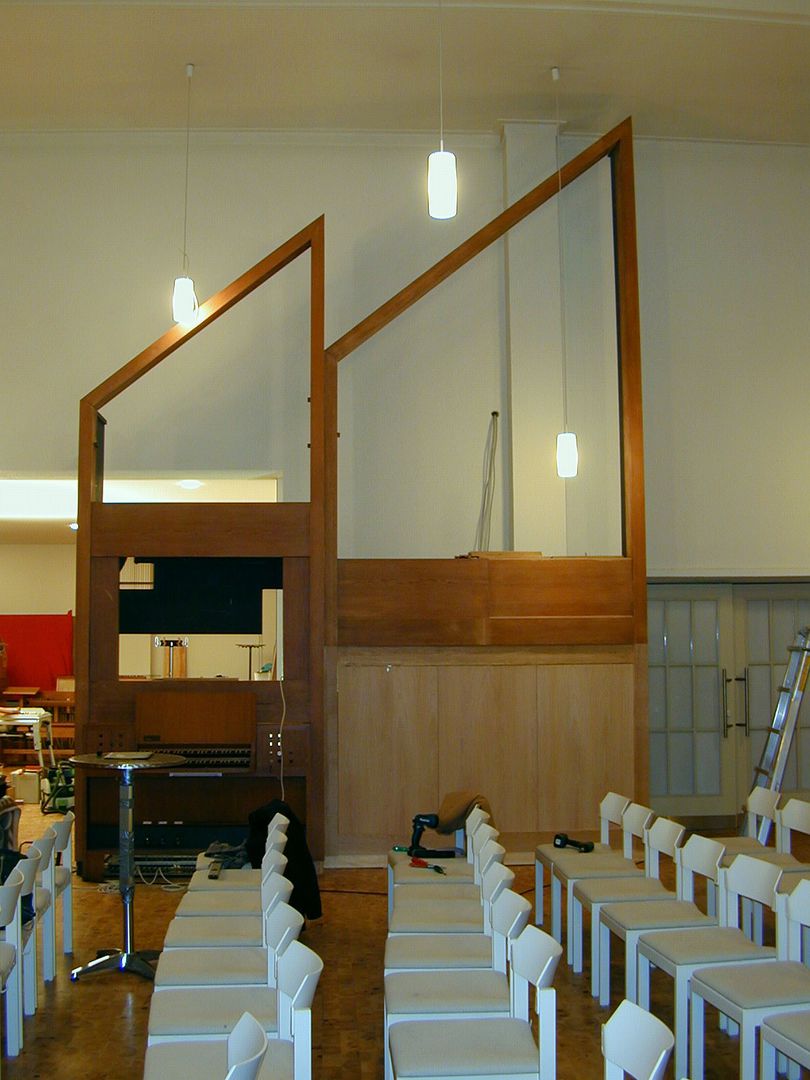 Die ursprünglich hintereinander stehenden Element von Hauptwerk und Pedal wurden seitlich angeordnet und die Spieltraktur, sowie Windversorgung entsprechend modifiziert.