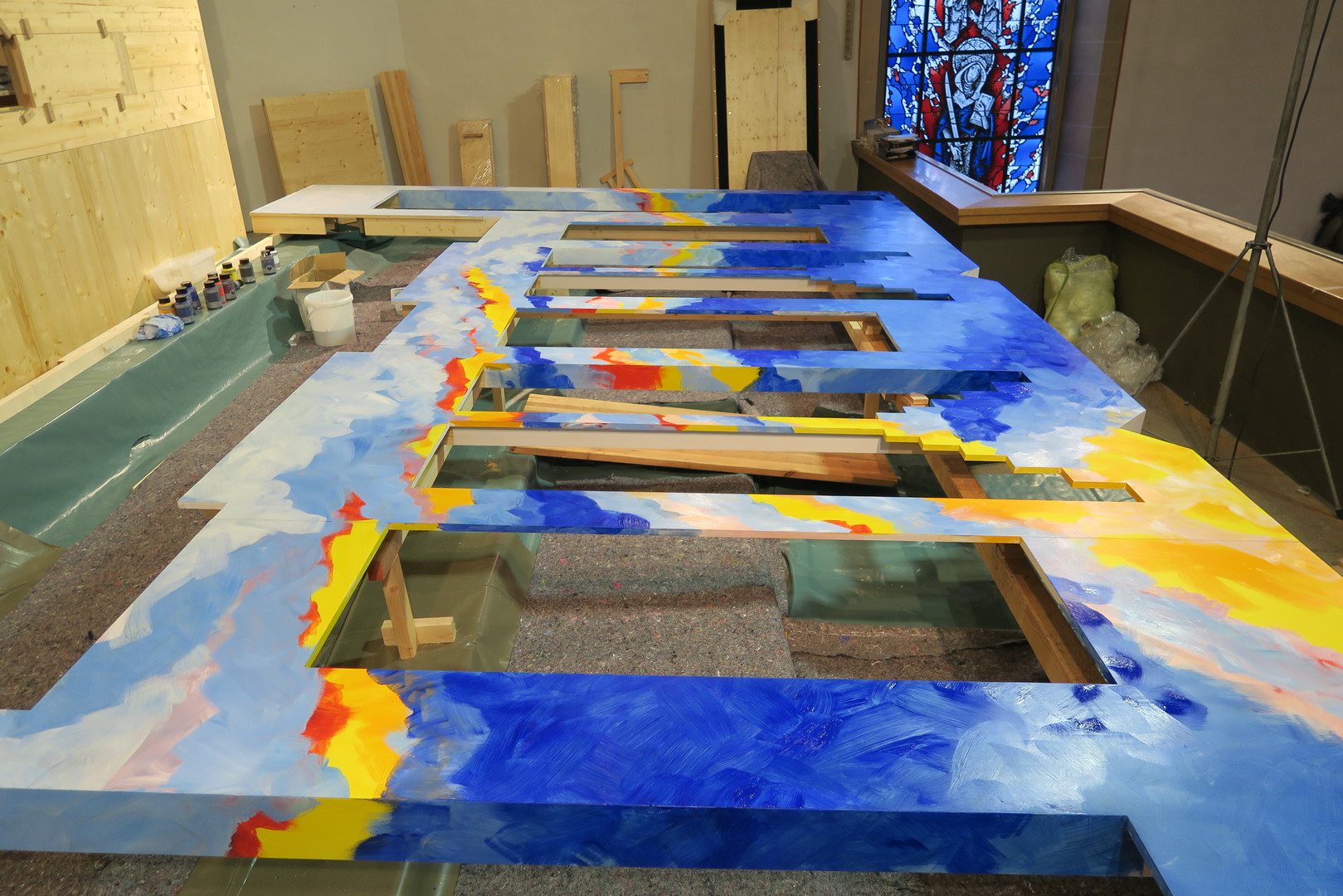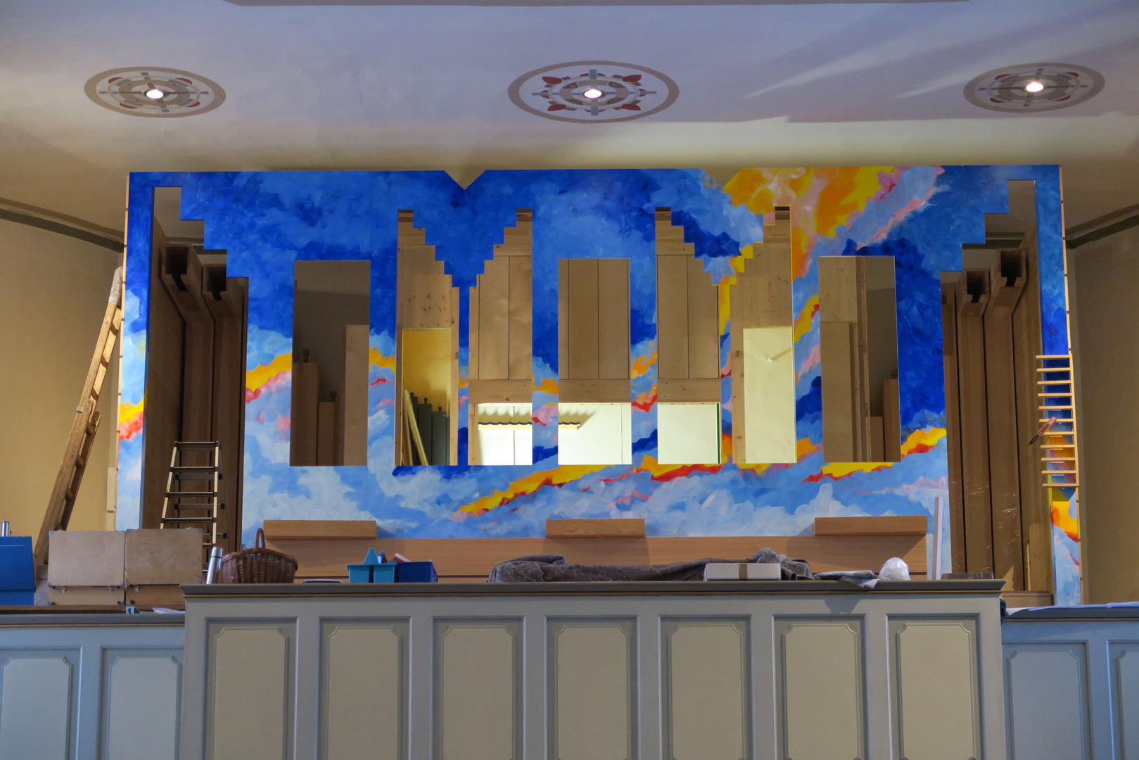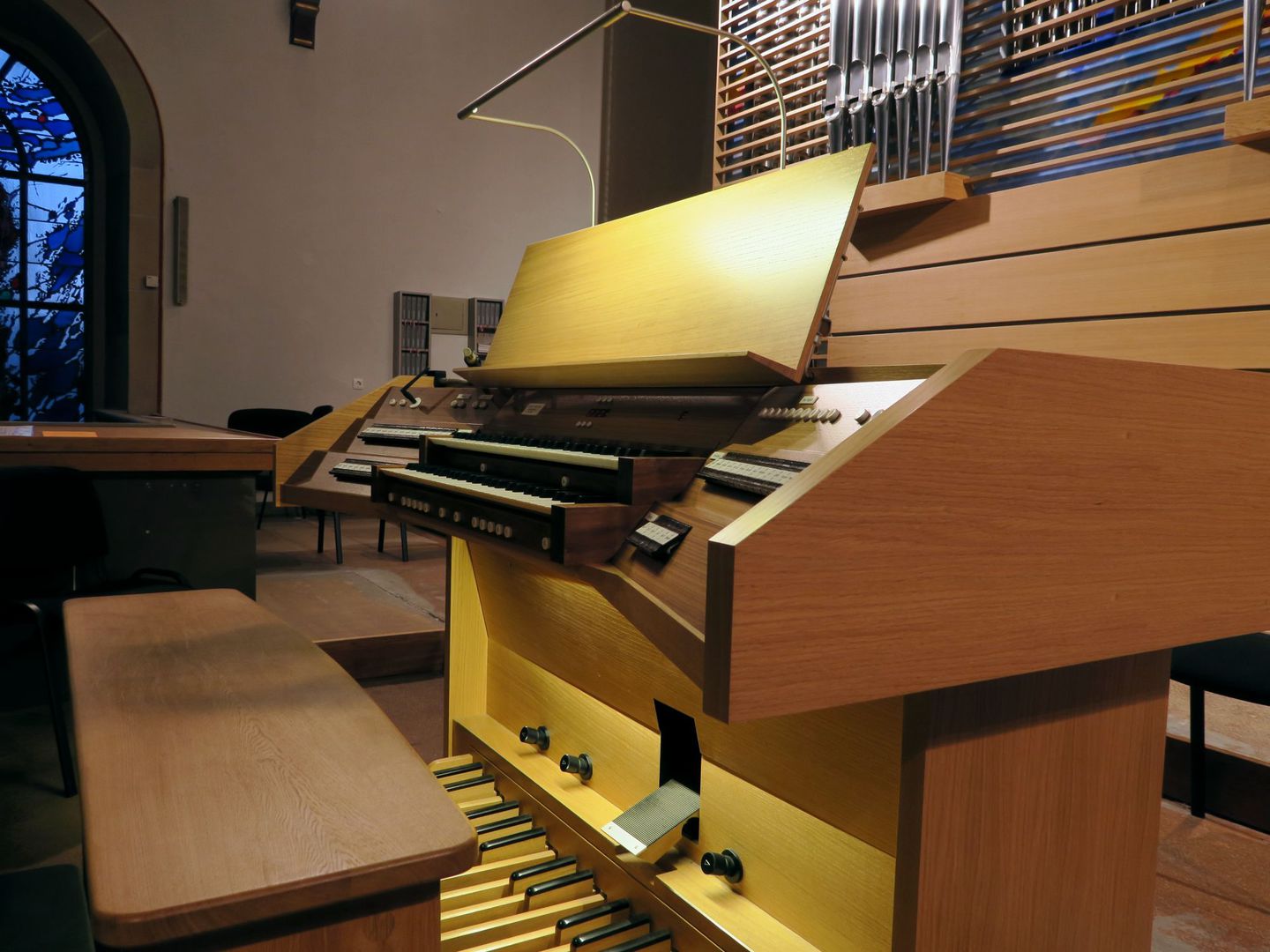 Der werkseigene Entwurf vereint moderne Elemente mit Impulsen aus der Farbgestaltung des Kirchenraumes.